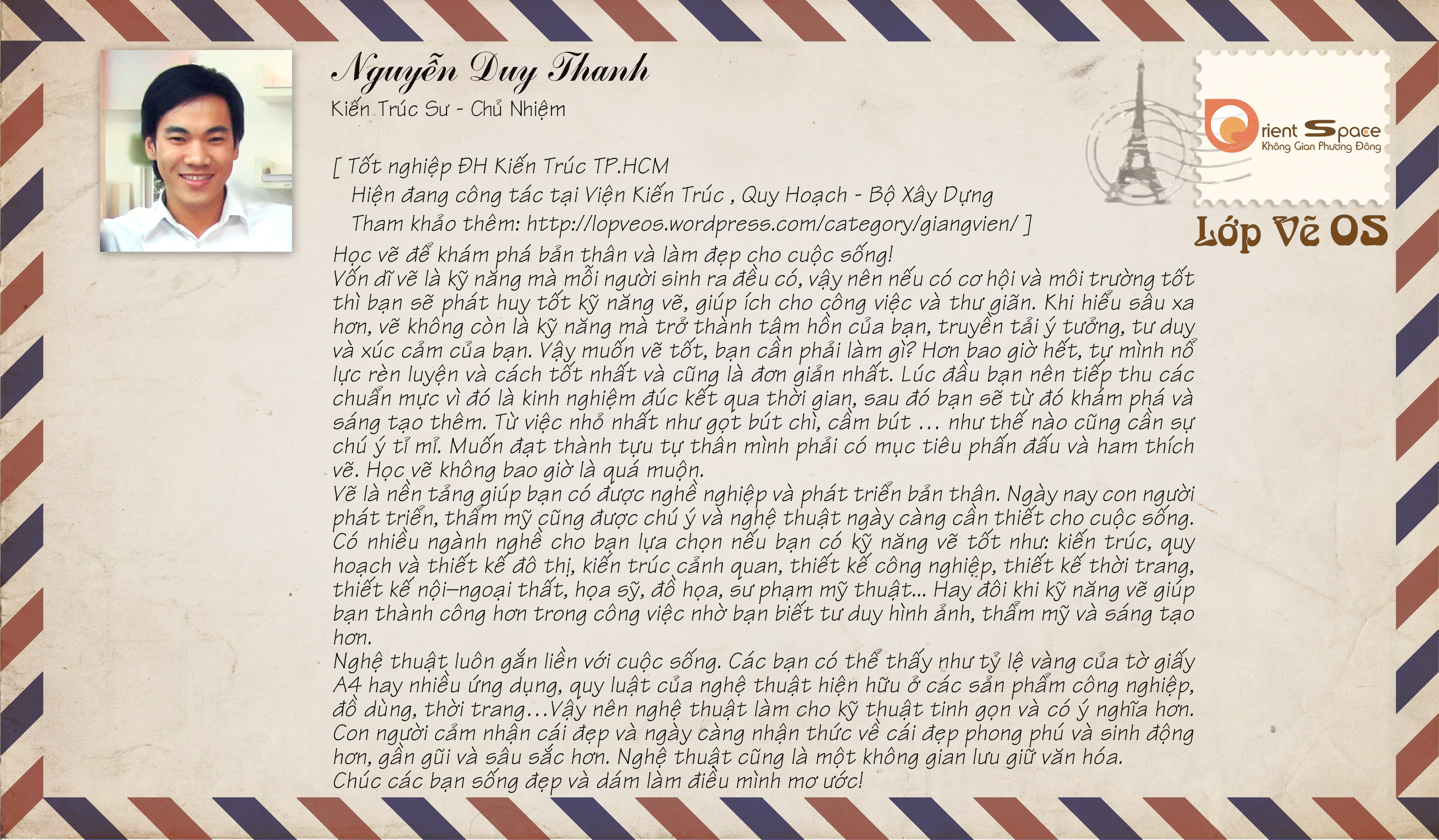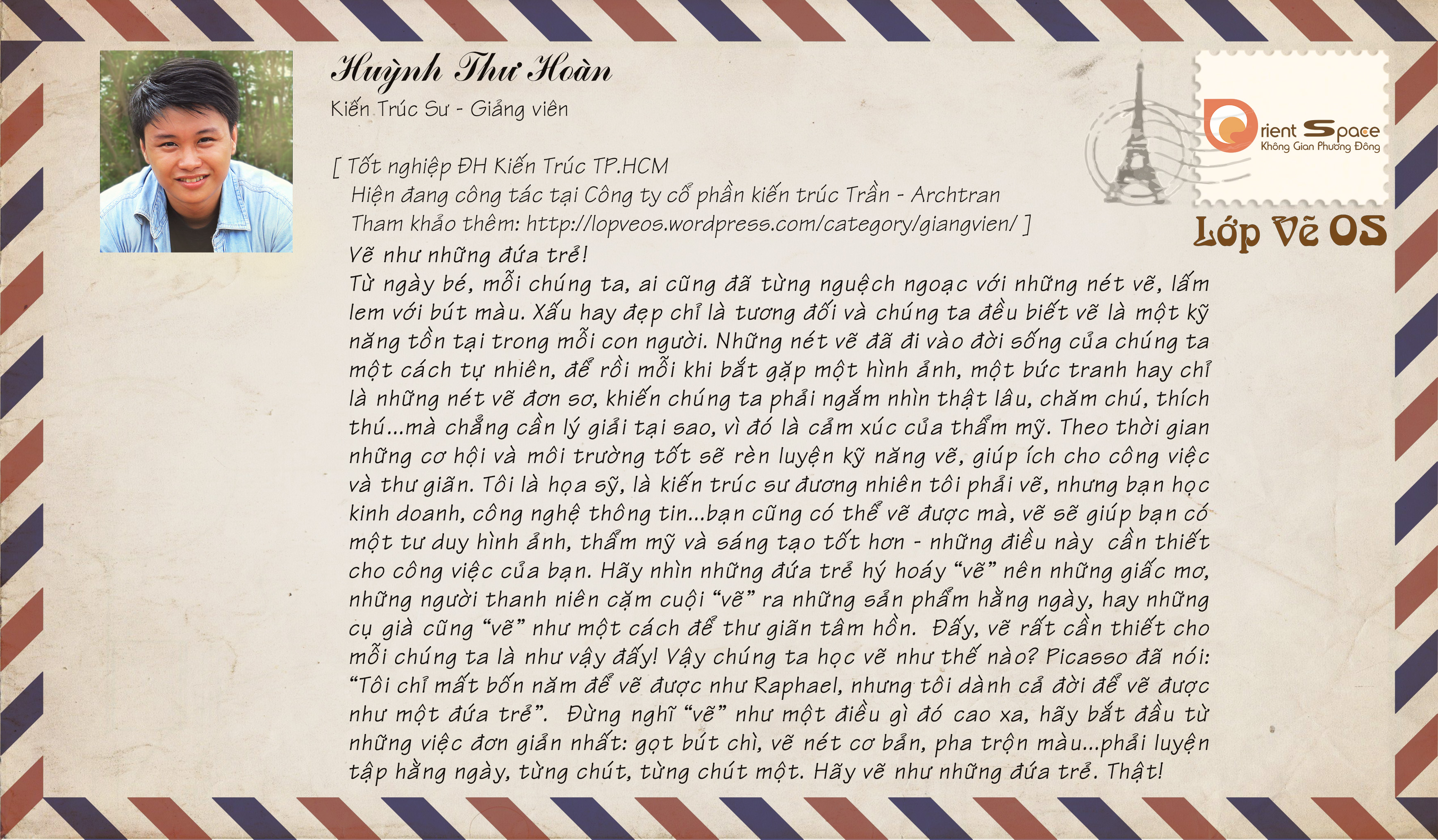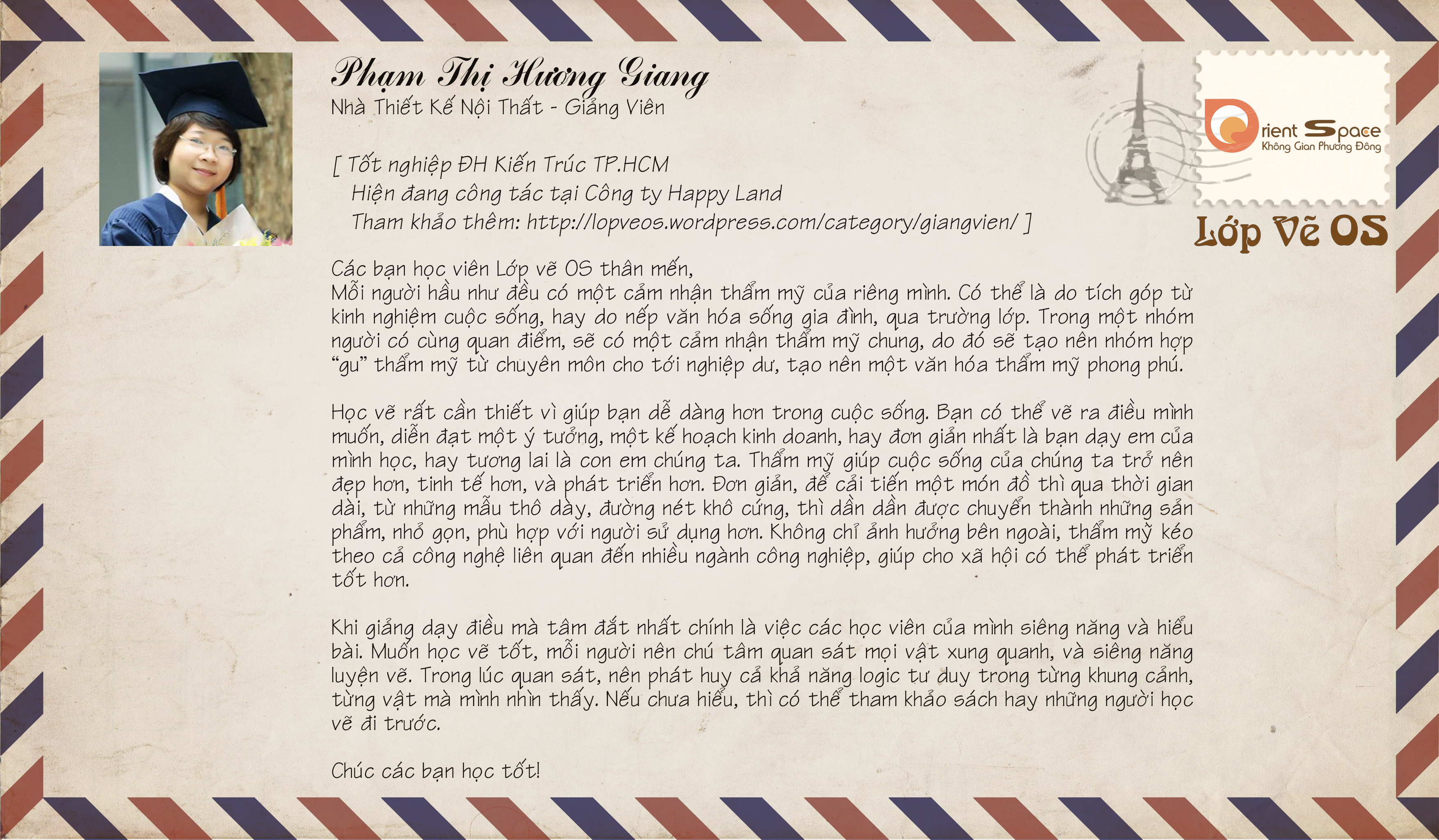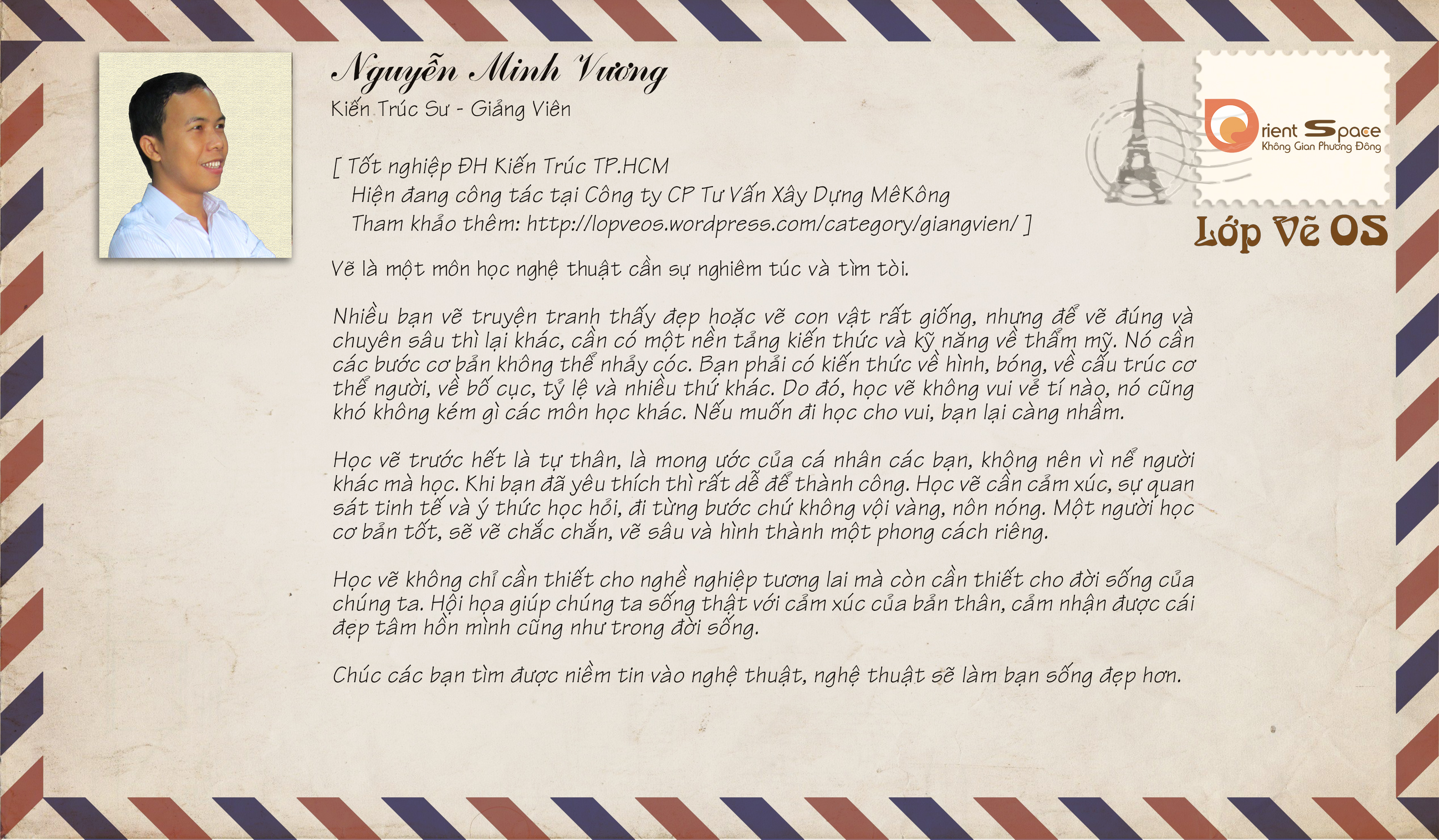 Giáo viên/Teachers Thư của thầy cô gửi các học viên Lớp vẽ OS Tham khảo thông tin thêm về giảng viên tại: https://lopveos.wordpress.com/category/giang-vien-teachers/ Chia sẻ: Nhấp để chia sẻ trên X (Mở trong cửa sổ mới) X Nhấn vào chia sẻ trên Facebook (Mở trong cửa sổ mới) Facebook Thích Đang tải... Liên quan