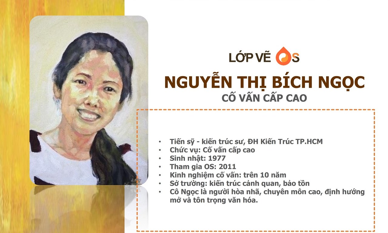 Giáo viên/Teachers Cô TS.KTS.Nguyễn Thị Bích Ngọc – Cố vấn cấp cao Chia sẻ: Nhấp để chia sẻ trên X (Mở trong cửa sổ mới) X Nhấn vào chia sẻ trên Facebook (Mở trong cửa sổ mới) Facebook Thích Đang tải... Liên quan