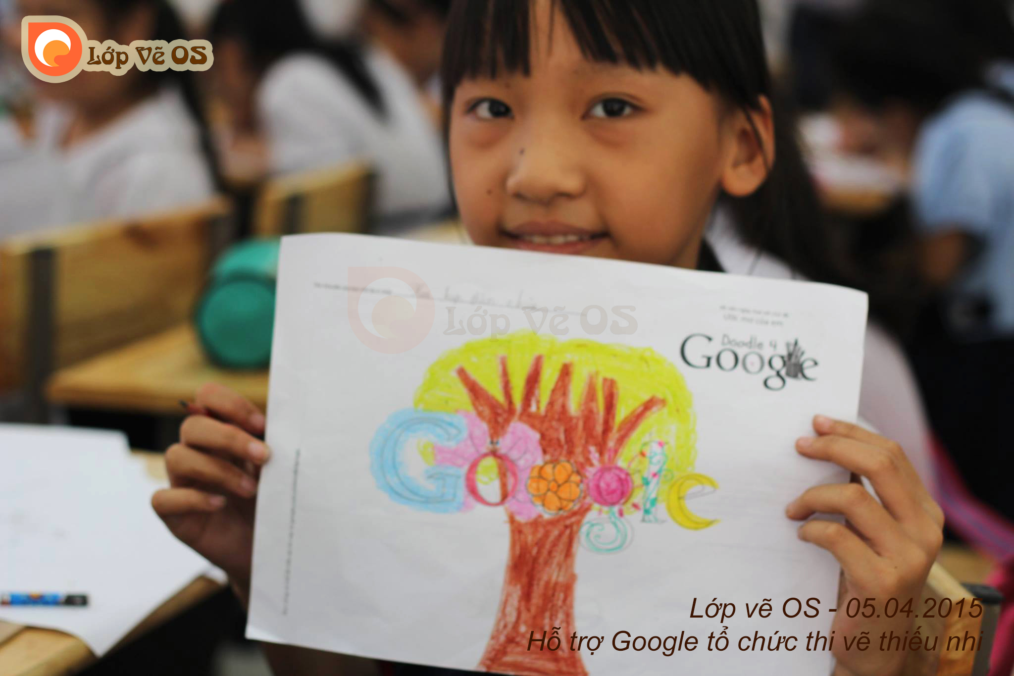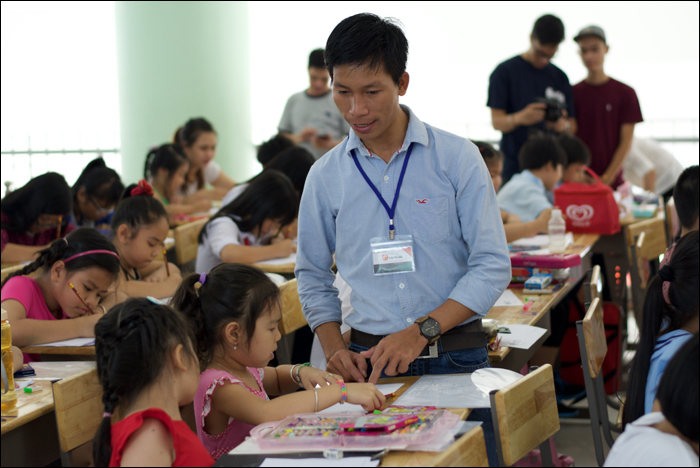 Thầy Thanh chủ nhiệm lớp vẽ OS hướng dẫn các em trong cuộc thi Doodle 4 Google do Google tổ chức