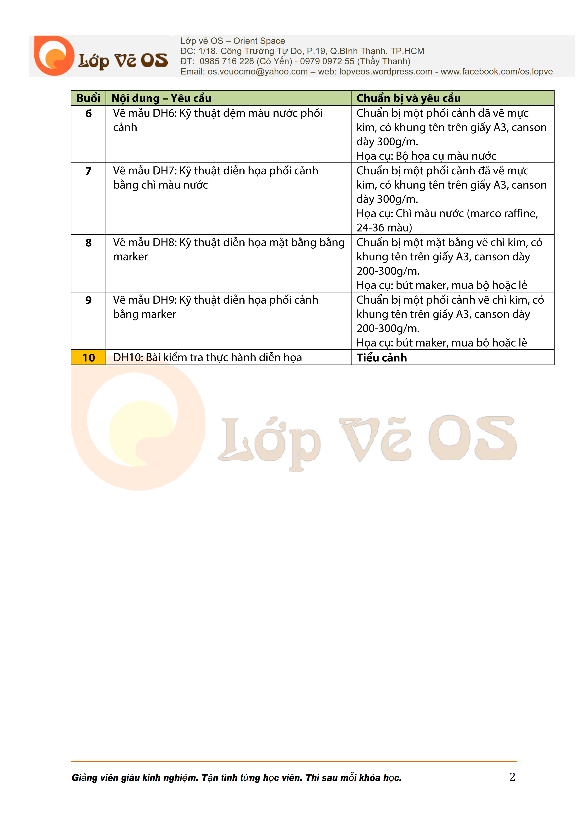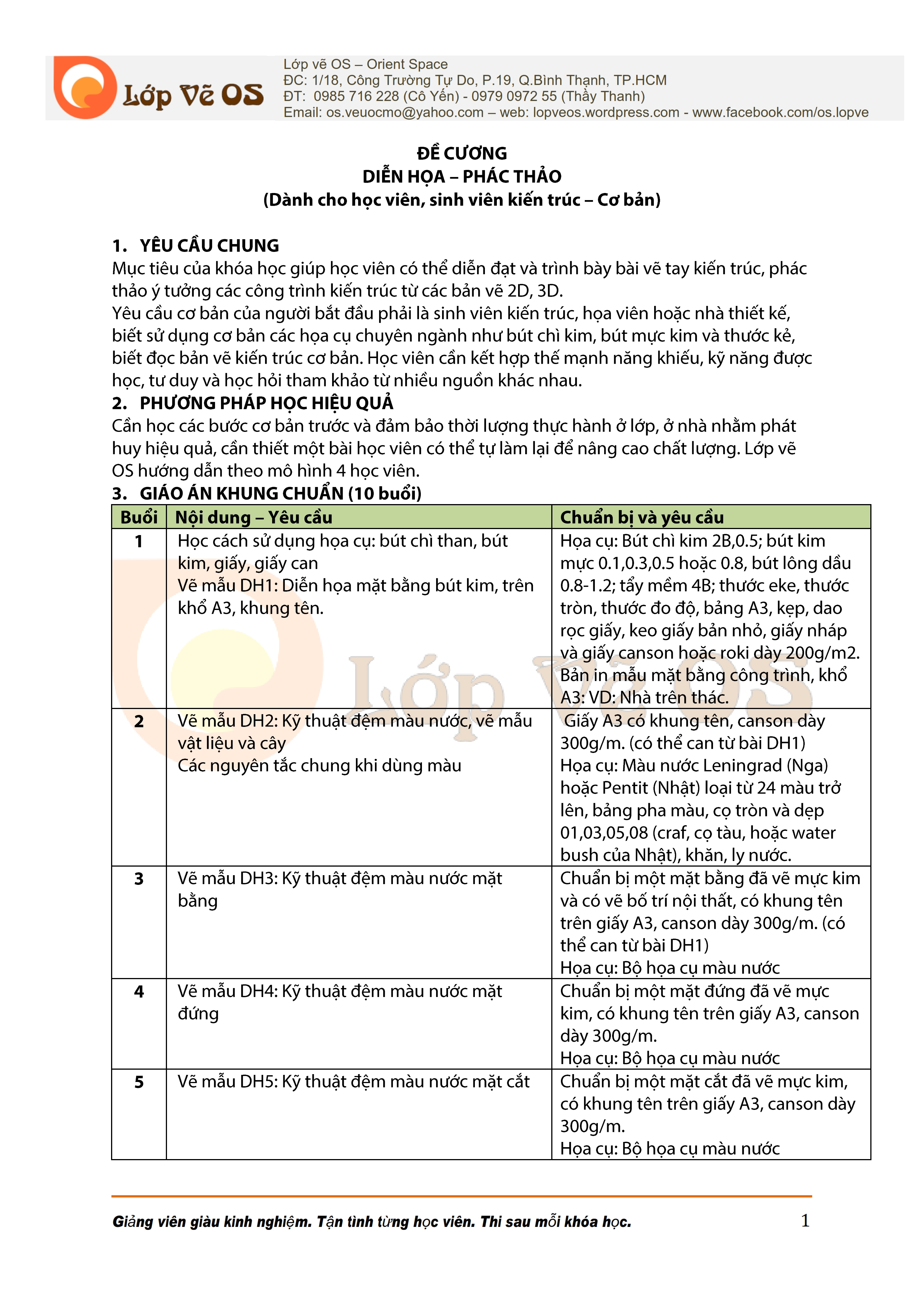 Cần học các bước cơ bản trước và đảm bảo thời lượng thực hành ở lớp học vẽ, ở nhà nhằm phát huy hiệu quả, cần thiết một bài học viên có thể tự làm lại để nâng cao chất lượng. Lớp vẽ OS hướng dẫn theo mô hình 4 học viên.