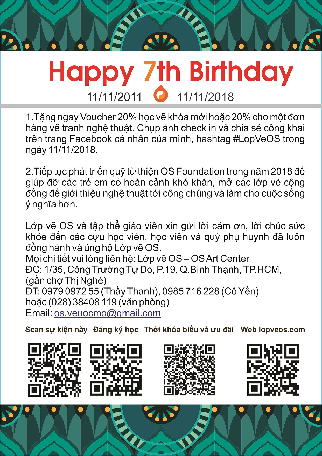 Hoạt động/Activities, Uncategorized Mừng sinh nhật Lớp vẽ OS lần thứ 7 – 11/11/2018 Quay lạiTin nhắn của bạn đã được gửi Tên(bắt buộc) Cảnh báo Thư điện tử(bắt buộc) Cảnh báo Trang web Cảnh báo Tin nhắn Cảnh báo Cảnh báo! Lưu Δ 10.792046 106.709618 1/35 Công Trường Tự Do, P.19, Q.Bình Thạnh, TP.HCM, Hồ Chí Minh, 700000, Vietnam Chia sẻ: Nhấp để chia sẻ trên X (Mở trong cửa sổ mới) X Nhấn vào chia sẻ trên Facebook (Mở trong cửa sổ mới) Facebook Thích Đang tải... Liên quan