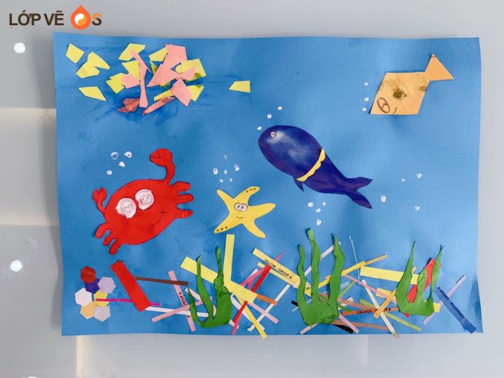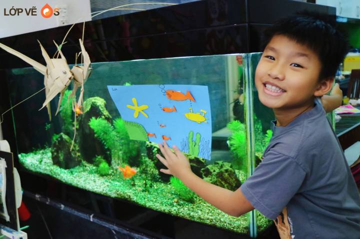 Mỗi tuần một chủ đề thật thú vị và sáng tạo tại Lớp vẽ OS. Và chủ đề của tuần này chính là “Hồ cá của em” 🐠 🐟 🐳
