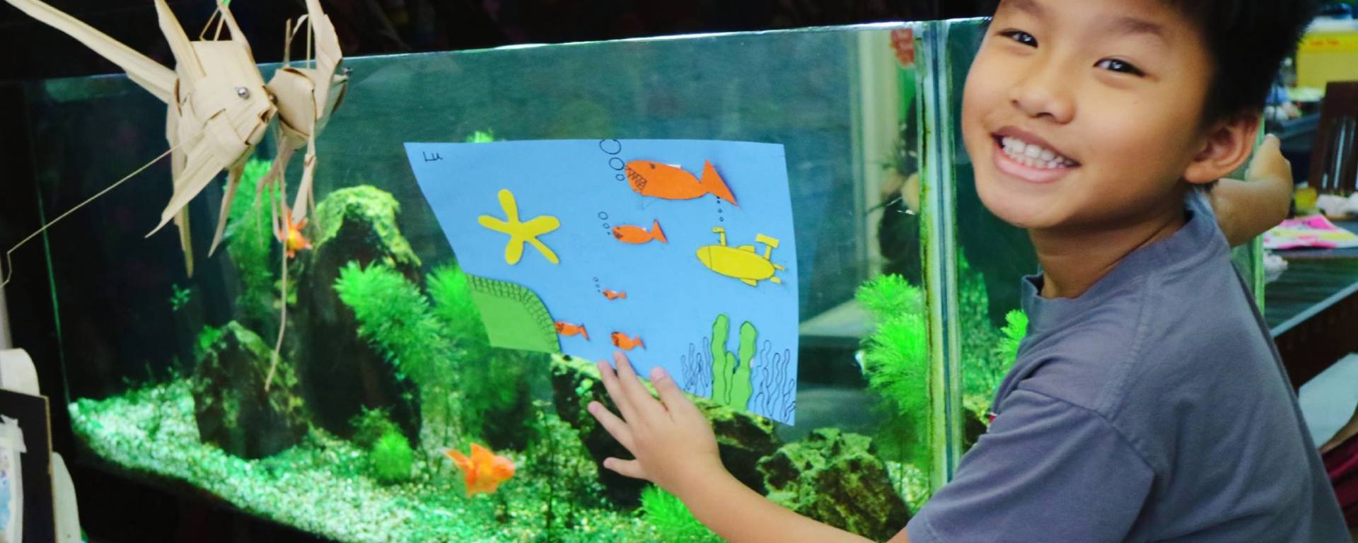 Mỗi tuần một chủ đề thật thú vị và sáng tạo tại Lớp vẽ OS. Và chủ đề của tuần này chính là “Hồ cá của em” 🐠 🐟 🐳