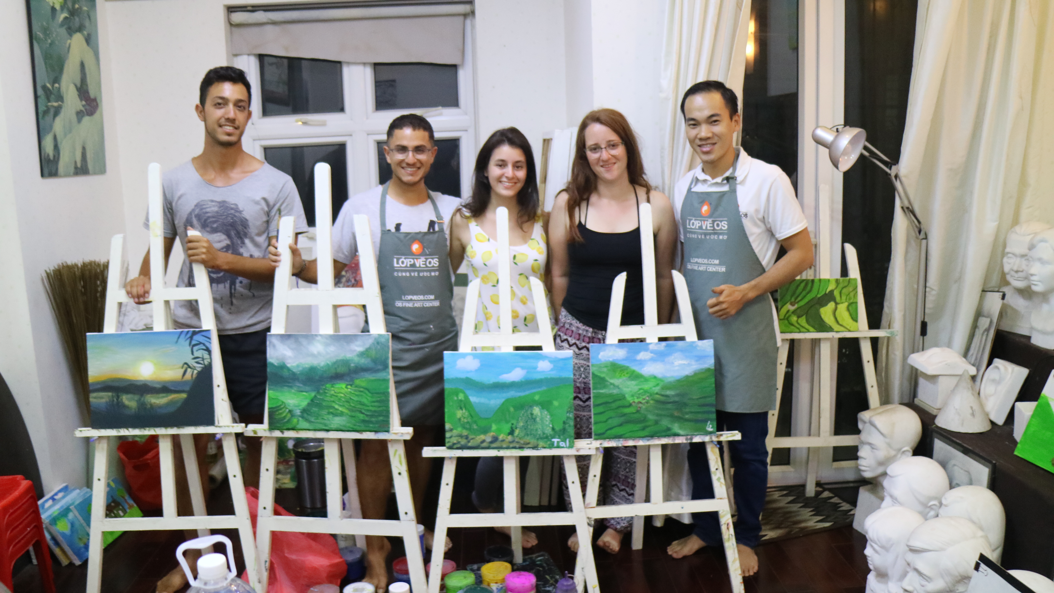 Nếu có dịp “đột kích” Lớp vẽ OS ở Q. Bình Thạnh, TP. HCM, vào một buổi sáng Chủ nhật bạn sẽ được đắm mình trong không gian nghệ thuật với một chút âm nhạc nhẹ nhàng, với mùi hương của màu vẽ, với những bức tranh màu nước, sơn dầu, thư pháp khắp các gian phòng. Trong không gian ấy, những học viên là những cô, chị lớn tuổi và cả những bạn trẻ là nhân viên văn phòng đang say sưa đưa từng nét cọ theo hướng dẫn của thầy giáo. Họ đến với bộ môn hội họa không phải vì có năng khiếu đặc biệt, cũng có những người chưa từng vẽ bao giờ, cũng có người vì đưa con đi học rồi thấy thích quá nên học luôn. Tranh của họ cũng không phải để triển lãm hay treo tường ở nơi sang trọng nào. Điều khiến nhiều người dành thời gian cuối tuần đi học làm họa sỹ đó chính là được thư thả với một bức tranh do chính mình vẽ nên, giúp họ quên đi những mệt mỏi thường nhật để tự do thể hiện sự sáng tạo của bản thân.