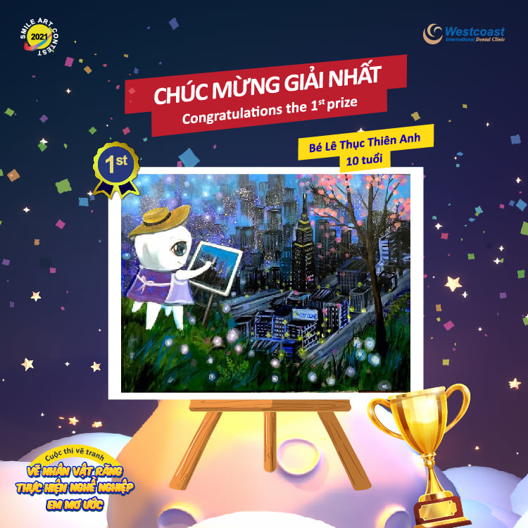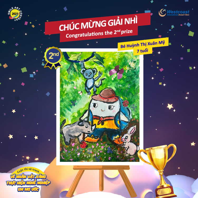 Xin chúc mừng các thí sinh đoạt giải, chúc mừng bé TRẦN THANH NGHỊ đã xuất sắc sáng tạo nên những tác phẩm đẹp mắt, truyền tải trọn vẹn chủ đề “Vẽ nhân vật răng thực hiện nghề nghiệp em mơ ước”. Hy vọng rằng, giải thưởng cuộc thi sẽ là phần thưởng khích lệ các bé tiếp tục theo đuổi ước mơ sáng tạo hội họa của mình.